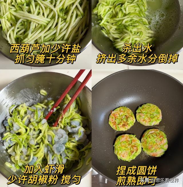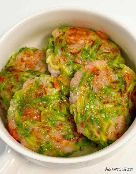 虾滑富含优质卵白和钙,西葫芦浮现补水、富含维生素。烙成小饼外酥里软,无过多调料,既能补钙补卵白,又能补充维生素,早餐、加餐齐合适。