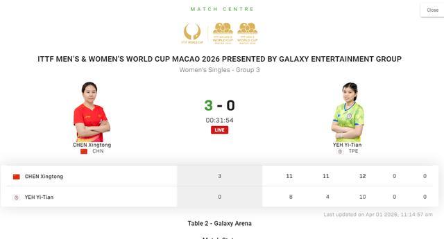 28岁的陈幸同在2026外洋乒联单打寰宇杯保抓了庄重的景色,她在继小组赛第一战3比0打败德拉戈曼之后,又在第二战3比0打败叶伊恬,从而两战全胜出线,挺进了16强。