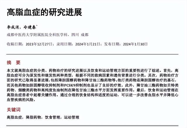 参考良友 [1]李成消, 冷建春. 高脂血症的策动推崇[J]. 临床医学推崇, 2024, 14(1): 1635-1646.