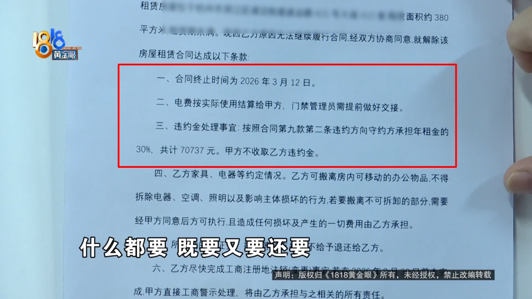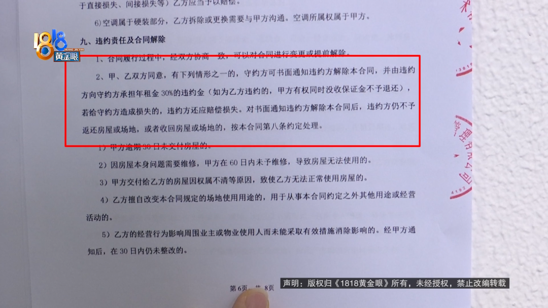 杨女士:最起码要折给我7万块钱。我押金3万多块钱,我的空调,对吧?我装修不错给你,拿过来你就租了,东说念主家也毋庸装了,东说念主家也省钱了,你也创收了呀。 记者:你既然以为这个爽约金你是故办法的话,那为什么要署名,我方要盖指摹呢? 杨女士的犬子 小田:因为其时我……这个是我过后等于去分析的时候,我才发现了这些问题。 记者:署名之前…… 杨女士:我不知说念呀,我给他带小孩,没随机间。 记者:之前莫得商榷过? 杨女士:莫得。 杭州橙功物业不断有限公司 谢司理:我只跟田敦厚疏通,让他姆妈先稍许隐藏。 杨女士:你不要凌暴我犬子年青敦厚,我跟你说,凌暴年青东说念主不好的。 记者:那她亦然投资东说念主啊,还有莫得可能跟率领再疏通一下呢? 杨女士的犬子 小田:你这个也莫得法律效用的,因为你们也莫得署名,也莫得盖印啊。 杭州橙功物业不断有限公司 谢司理:盖印,盖了我会给你的,这个我会再给他的。 记者:那你仍是给他这一份了? 杭州橙功物业不断有限公司 谢司理:有的有的,一模相似的。这个一模相似的,我再给他一份敲章的,齐有的。 记者:那他在这里,他留底的就莫得了呀。 杨女士:是你们片面的。 杭州橙功物业不断有限公司 谢司理:阿谁老李,你去拿一份来。 杨女士:你毋庸,你当今拿没用。