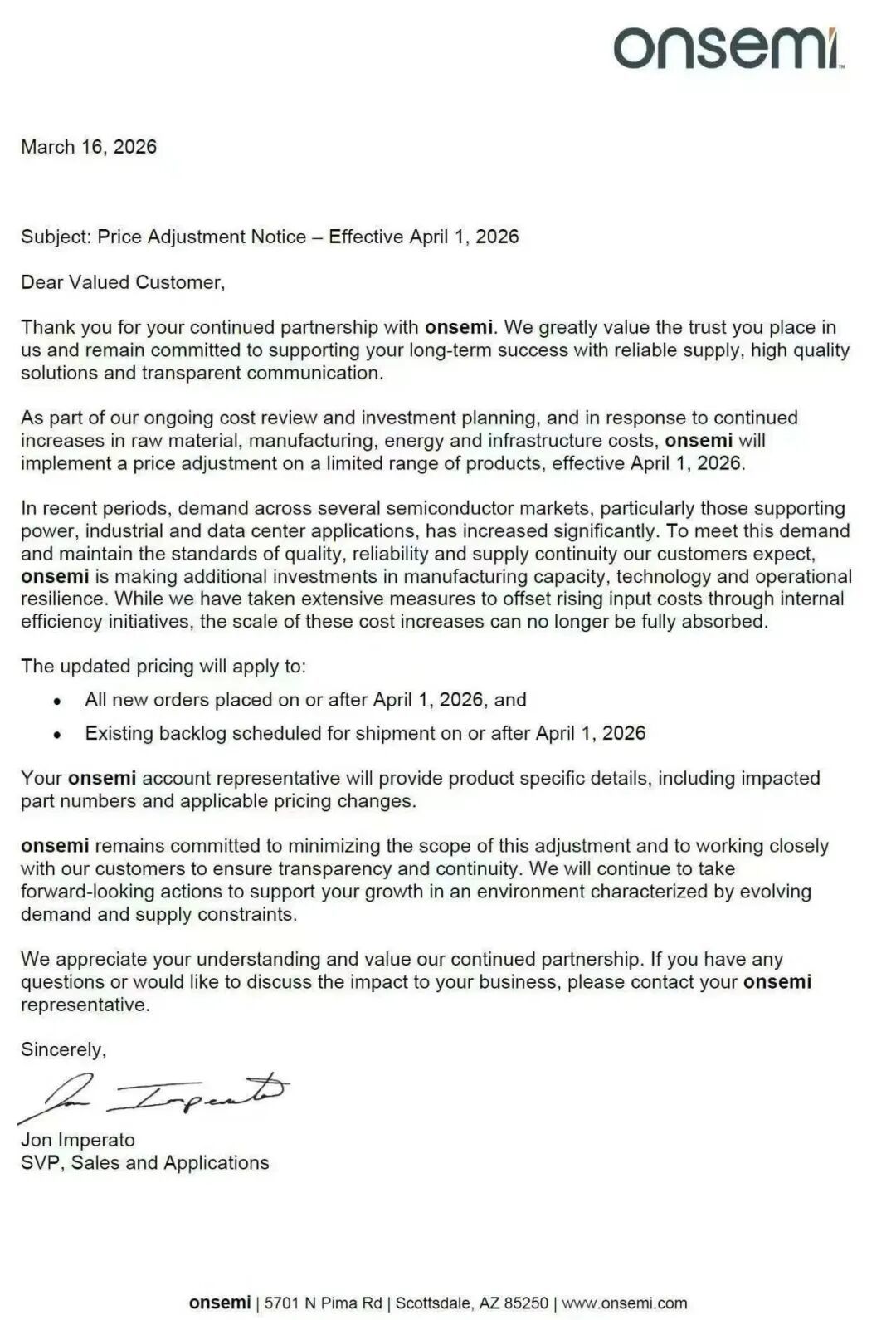 网传安森好意思于3月16日发布调价陈述,4月1日起将对部分产物实施价钱调整。