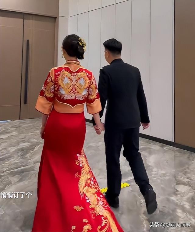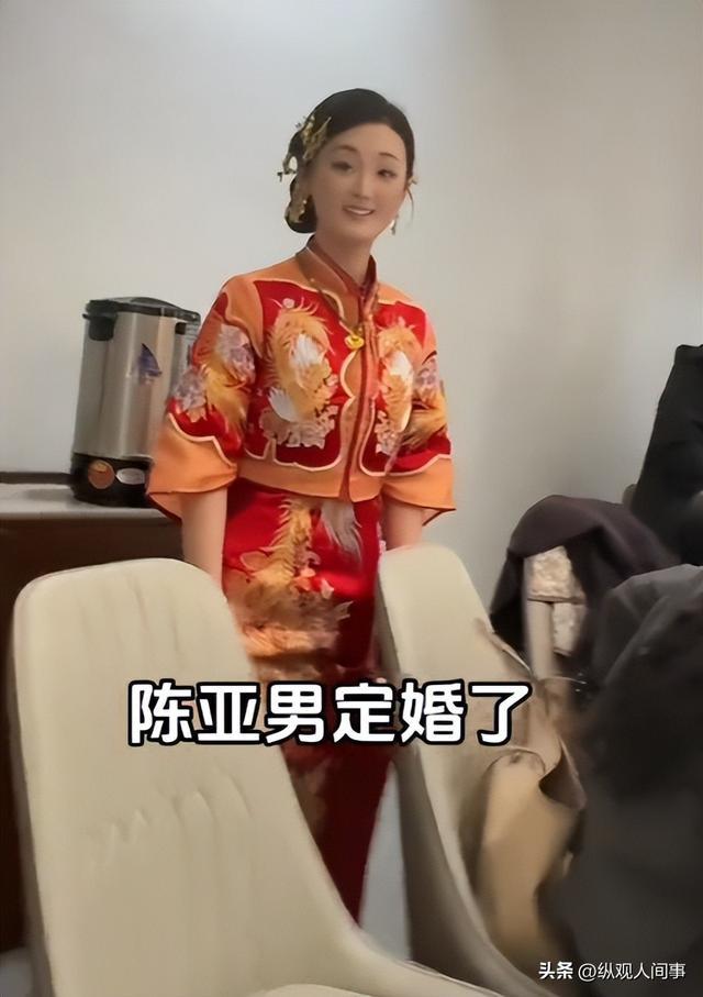 01 从网友曝光的视频和现场相片来看,陈亚男本日成心穿了寂然新考中秀禾服。 酒红色的面料上绣着细致的龙凤图案,领口和袖口的盘扣筹算尽显温婉。