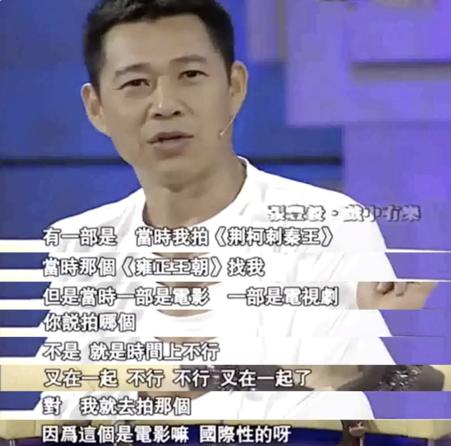 03、张丰毅错过《雍正王朝》雍正帝 《雍正王朝》可以说是表象级的爆剧,播出二十多年齐人好猎,到当今王人还养谢世一无数影视证据博主,唐国强更是凭借变装魔力不休圈粉年青东说念主,而这个契机正本是属于张丰毅的。胡玫导演采选张丰毅饰演雍正帝,唐国强饰演八王爷,准备开机之时,张丰毅被陈凯歌请去救场出演《荆轲刺秦王》,比权量力之下张丰毅辞演雍正帝。