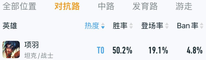 项羽最近在顽抗路短暂进步为T0,胜率50.2%登场率面临20% 为啥项羽能短暂崛起?中枢就在于他的二手段自带 “弱化” 着力,团战里一开二手段,不仅能裁减对面的输出伤害,还能给我方加坦度,往东谈主堆里一站,即是个移动的 “减伤堡垒”