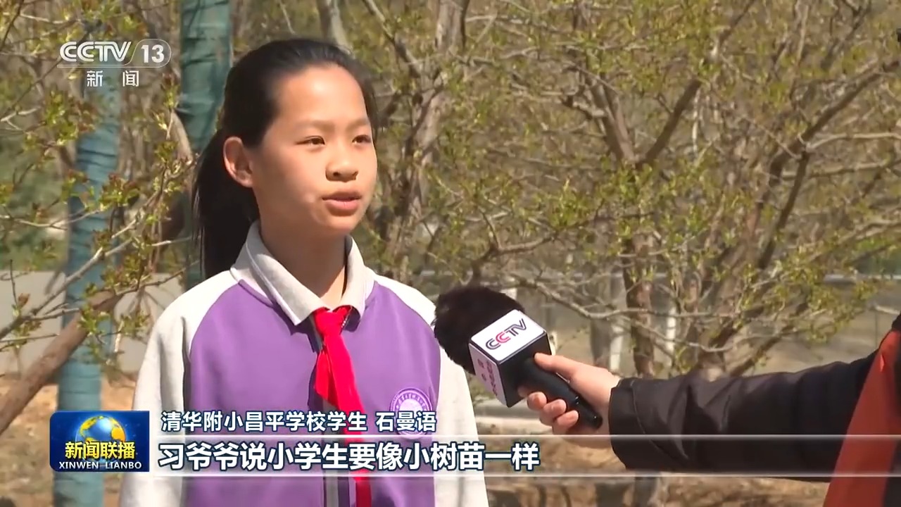 清华附小昌平学校学生石曼语:习爷爷说小学生要像小树苗相同,有活力充满但愿。我合计咱们应该像小树苗相同阳光豁达,将来长成参天大树,为故国孝敬一份力量,也要多植树,绿化咱们的绚丽家园。