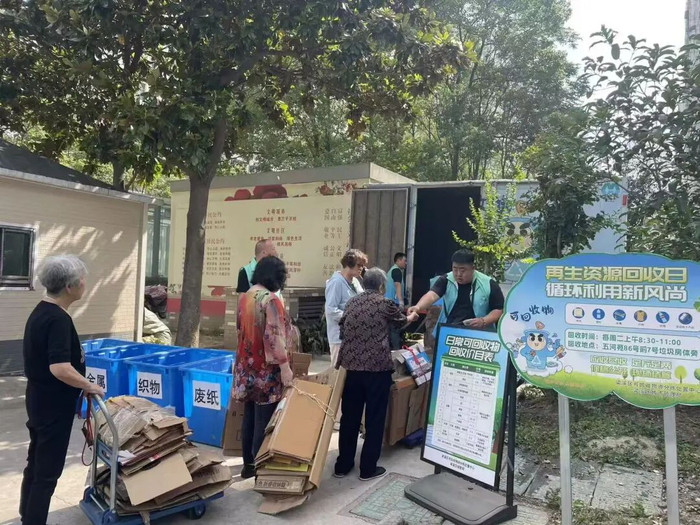 而在“老城厢”梁溪区,回收的“玩法”又不一样。“透明塑料瓶1.1元/斤,非透明塑料瓶0.2元/斤……”每周二上昼,五河苑小区门口准时停来一辆厢式货车。隔壁住户带着积聚下的废瓶子、废纸盒按次列队、称重、收钱。最多的一次,两小时收了1吨废品,货车跑了两趟才装完。这是梁溪区施行的“以车代库”款式——货车即是出动的回收站。 在梁溪52个小区,这么的定时定点回收每周一次;在112个小区,旧衣智能回收车提供常态化作事;另有7个小区建成了功能更为完善的可回收物惠民作事站。住户每次交投可回收物,除取得市集价现款酬报外,还可额外累积“环保积分”——1元积1分,50分换1元现款。这些积分可胜仗用于抵扣部分物业作事用度,同期物业公司动作社区贬责的病笃一环,也将确认小区举座回得益效取得一定比例的现款反哺。