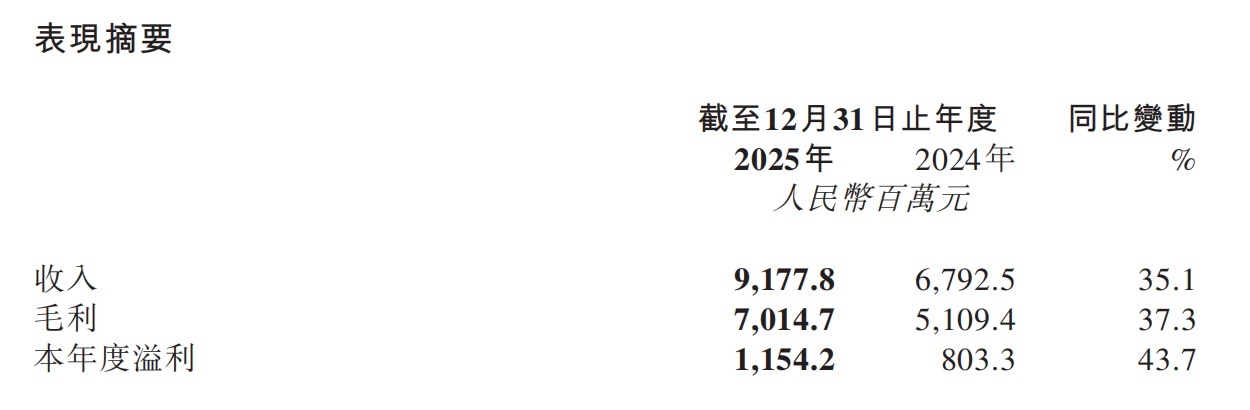 【文/王力 剪辑/周辽阔】 上海上好意思化妆品股份有限公司(2145.HK)近日发布限度2025年12月31日止年度全年事迹公告:全年收入达东说念主民币91.78亿元,同比增长35.1%;净利润11.54亿元,同比增长43.7%;毛利率由上年的75.2%微升至76.4%。这是上好意思自2022年底登陆港交是以来,鸿沟初次轻松90亿元大关。