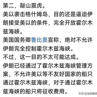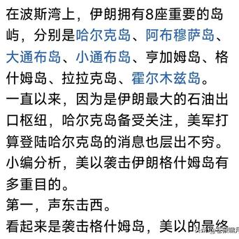 好意思以蓄谋已久,终于对霍尔木兹海峡下手!最初轰炸该海峡最大岛屿:格什姆岛!该岛扼守霍尔木兹海峡咽喉部位,岛上稀奇个村落,10万住户。轰炸酿成8东谈主死字,受伤东谈主数概略。 好意思以为何轰炸格什姆岛?网友分析是: 1.特等致胜。诱导伊朗在意力,然后突袭哈尔克岛!那处石油外运量占伊朗出口总量90%,是伊朗经济命门。也可能突袭伊朗,夺取浓缩铀! 2.敲山振虎。因伊朗已“半关闭”海峡,只允许友好国度油轮通过,不允许好意思以与不友好国度油轮通过,其他油轮征收“过路费”。好意思以此举是申饬,警告伊朗不要大力妄为,保捏灵通? 3.小试牛刀。为更大更千里重的打击作念准备!报谈称此次轰炸之前,OD体育(中国)好意思军B-2轰炸机投下数枚2000磅巨型钻地弹,炸毁伊朗中部伊斯法罕地下弹药库,激发稠密殉爆,时局相配惊东谈主! 苍狼快乐网友分析。苍狼坚捏以为,川普最思拿下的主张,不是格什姆岛,也不是夺取浓缩铀,而是哈尔克岛。拿下那处将领域伊朗经济命门,阻挡伊朗融合,快乐其条目坚决条约。 至于是否如斯?伊朗能否看透好意思伊“贪心”?是否屈服川普压力融合签约?这个谁能臆测?只可静瞻念其变! 苍狼仅仅生机,两边不该如斯较劲!为了国度经济发展,保险东谈主民生计,各其后退一步,签约息兵不好吗? …………od体育中国手机官网入口 ![]() ![]() ![]() ![]() ![]() ![]() ![]() ![]() ![]() ![]() ![]() 比赛下注app官方网站