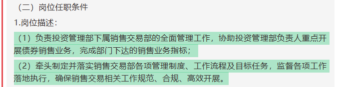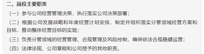 这次国盛证券市集化选聘副总司理,正与两位高管行将下野商酌,管制层将出现岗亭空白。 从公司官网公布的高管威望来看,当今共有位,分手是党委文告刘朝东、党委副文告戴诗鸣、党委委员、总司理赵景亮、副总司理兼财务负责东说念观点昌生、副总司理董东、副总司理朱宇、合规总监、首席风险官唐文峰、董事会秘书刘公银、首席信息官陆修然。 就在旧年1月,国盛证券原总司理徐丽峰因到龄退休卸任,而后总司理一职由副总司理唐文峰代为履职。在随后动手的新总司理市集化选聘中,唐文峰一度被视为热点东说念主选。 4月1日发布的公开选聘投资管制部副总司理公告中,则明确了部门副总的职责,一是负责投资管制辖下属销售来往部的全面管制责任,协助投资管制部负责东说念主要点开展债券销售业务,完成部门下达的销售业务观点;二是牵头制定并落实销售来往部各项管制轨制、责任经由及标的任务,监督各项责任落地实行,确保销售来往商酌责任表率、合规、高效开展。